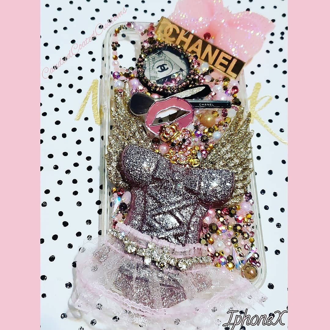 Custom hand made IphoneX Pink and Gold Designer themed case encrusted with Swarovski and premium Crystals and other premium embellishments