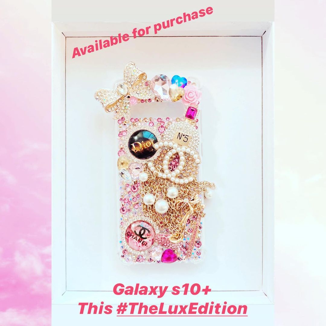 From our Lux Edition: Custom hand made Samsung Galaxy s10+ pink & gold themed case encrusted with premium Crystals and other premium embellishments