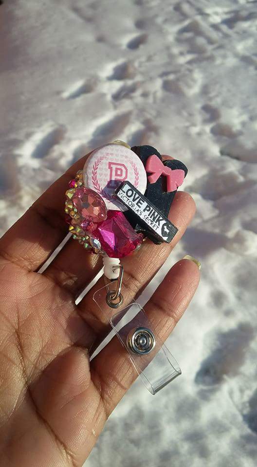 Victoria Secret PINK ID badge holder with premium crystals and genuine pink Swarovski crystals